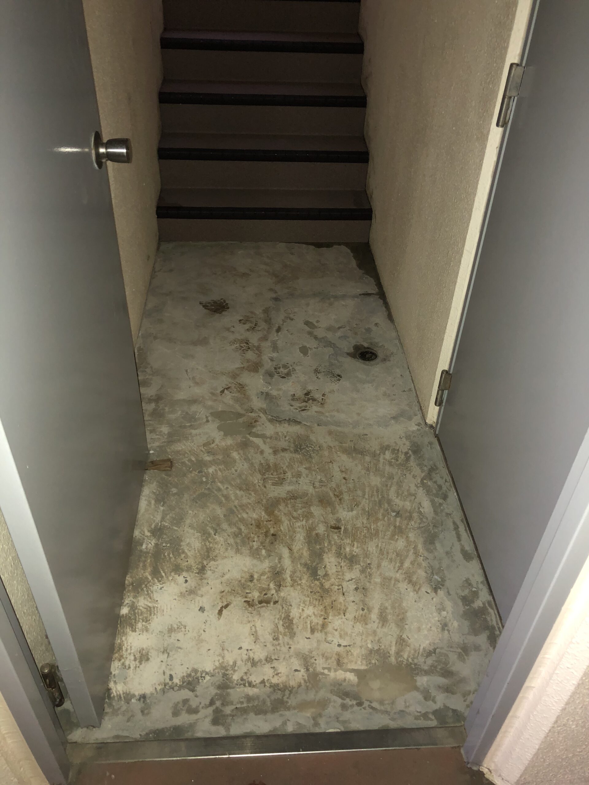 コンクリートの床を滑らないようにする為のシートを貼る工事です。